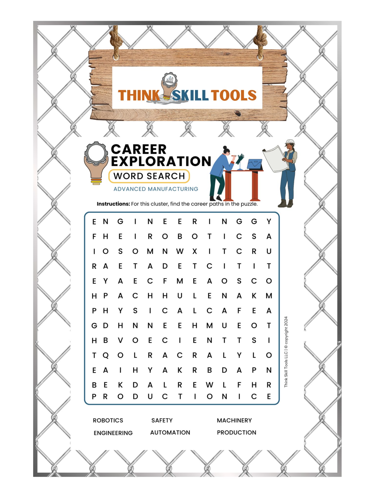 Have students explore the Advanced Manufacturing career cluster by identifying the different career paths in this fun crossword puzzle. Get students excited (and primed) for all things career exploration!