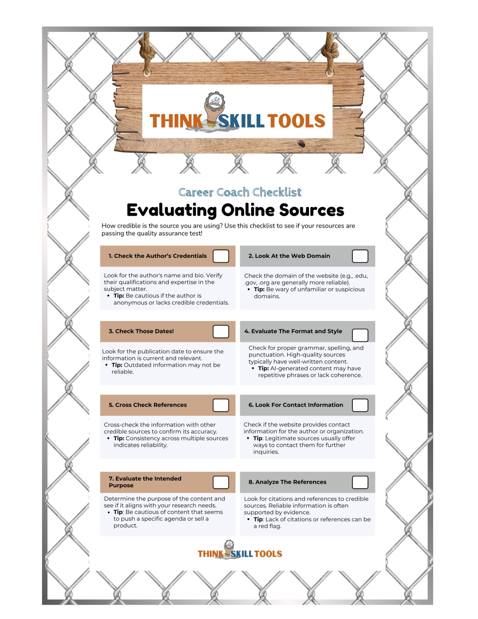 - FREE EVALUATING ONLINE SOURCES CHECKLIST PRINTABLE (you print) in digital (PDF) format.