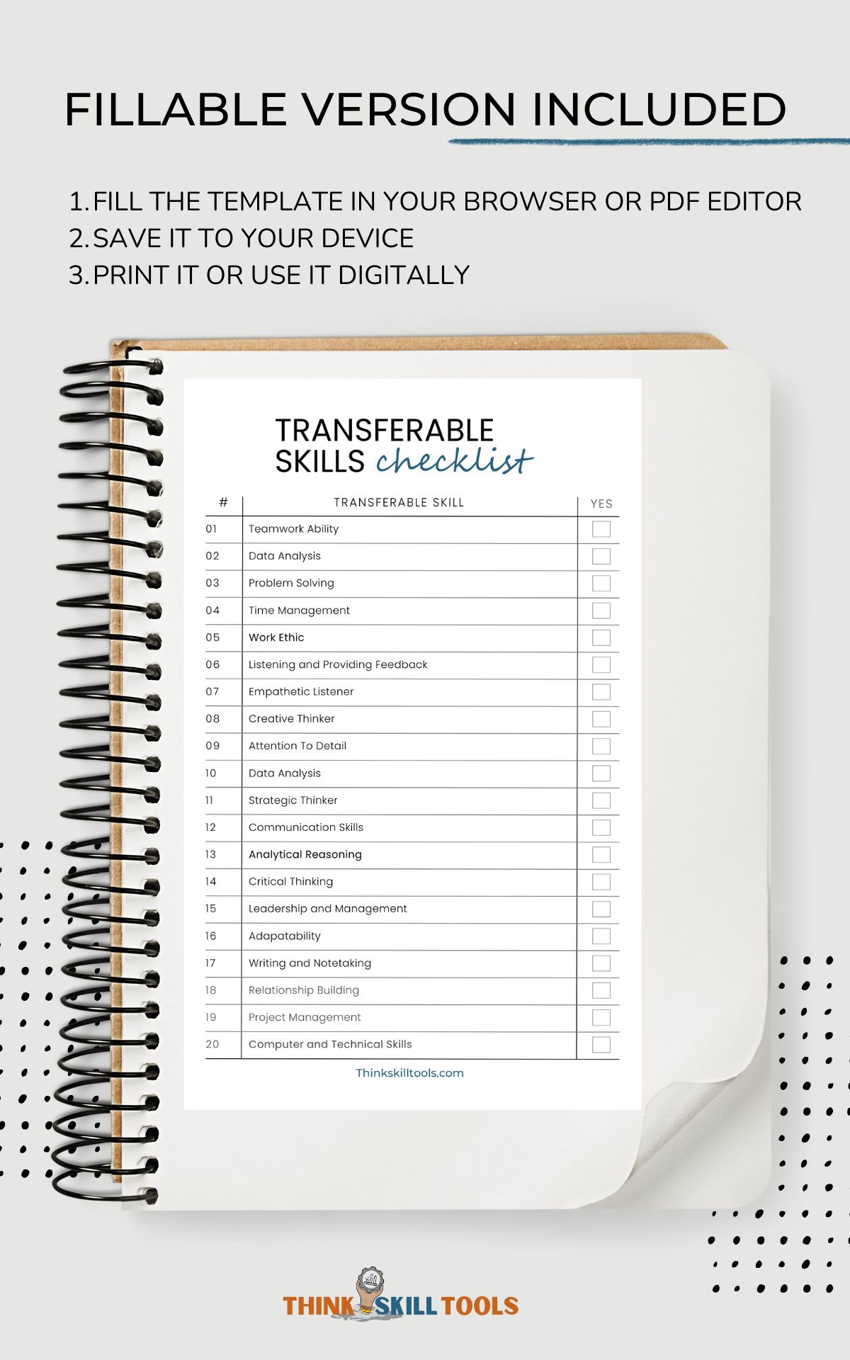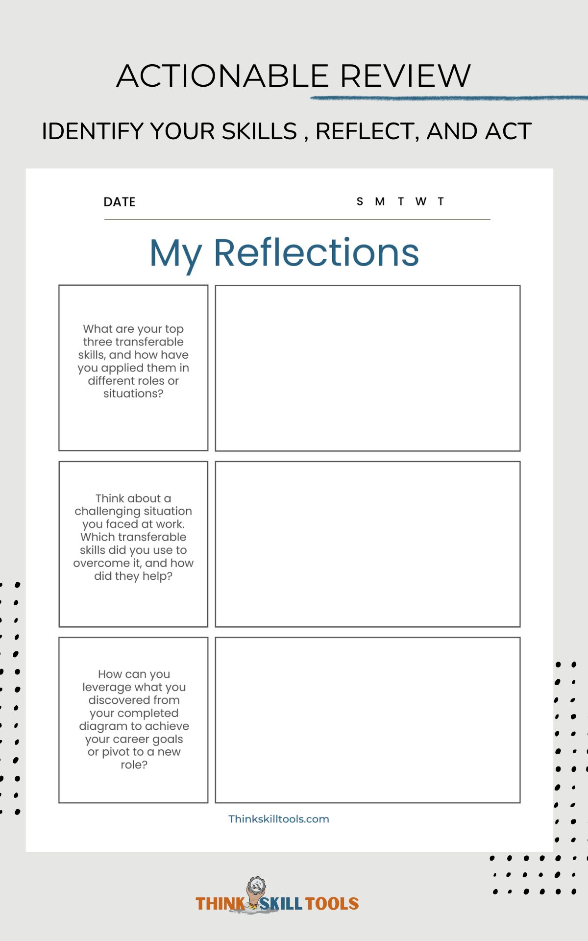 Identify Transferable Skills Review- Skills Review, Skills Reflection, Letter Size, Printable & Fillable PDF, Instant Download