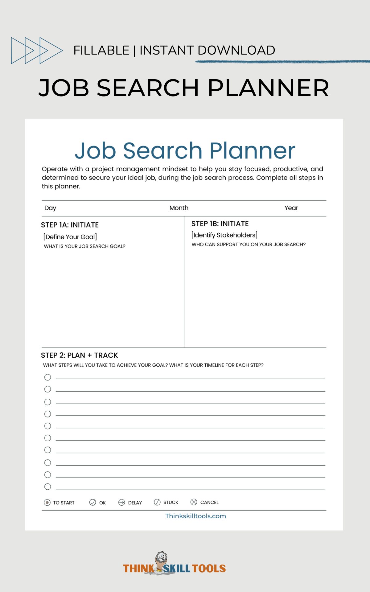 Job Search Planner – Project Management Style Planner, Job Search Planning Instructions, Letter Size, Printable & Fillable PDF, Instant Download