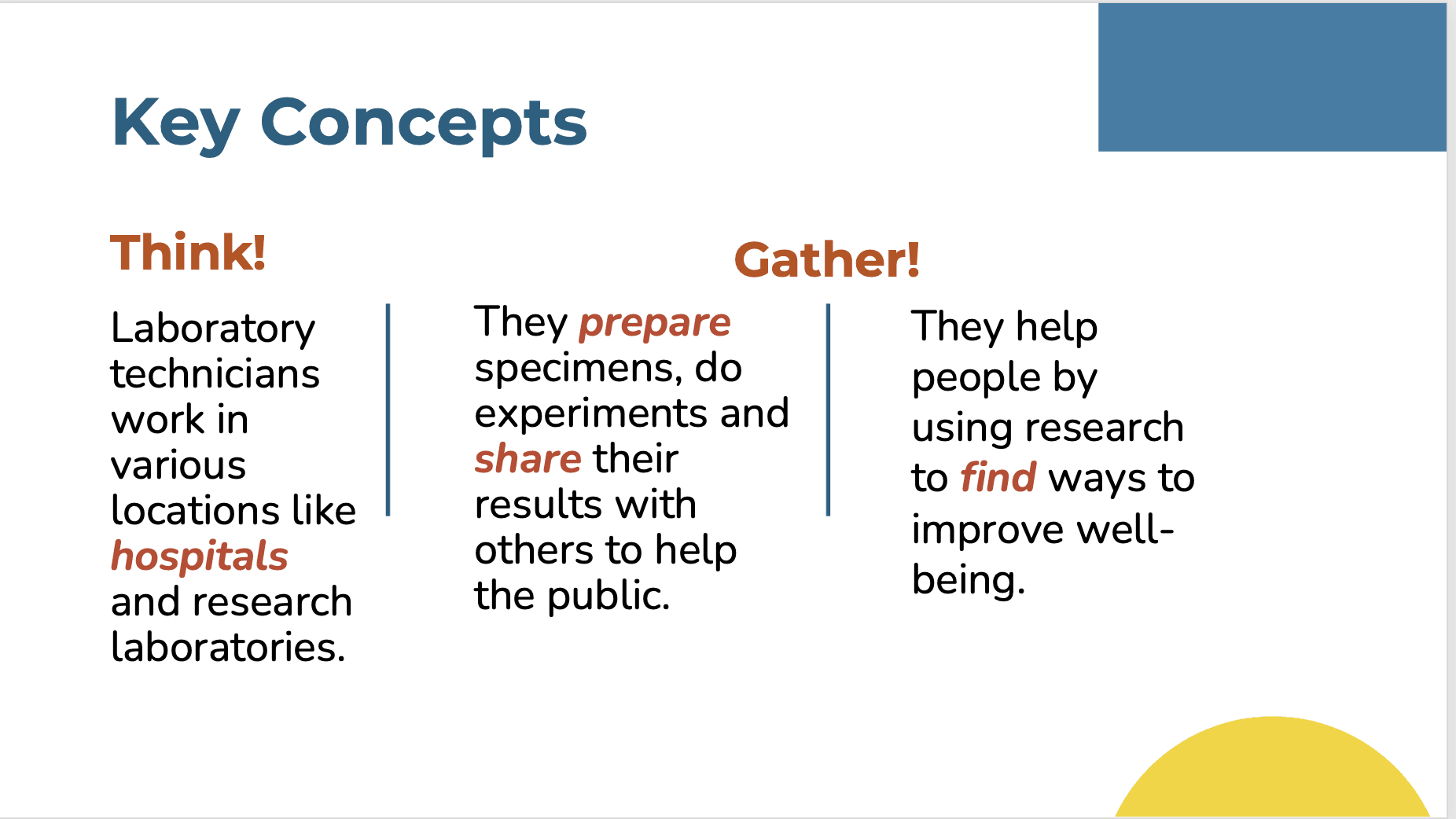 • Lesson slides are designed to accompany the Laboratory Technician lesson.