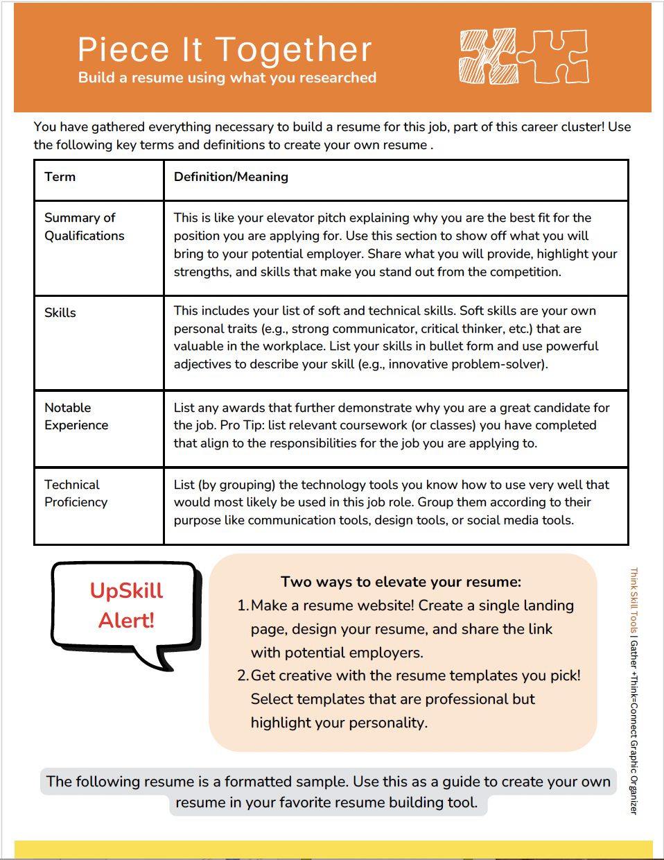 This is a great activity to help students strengthen their research analysis skills while mastering the art of using what they research to design a very strong resume.